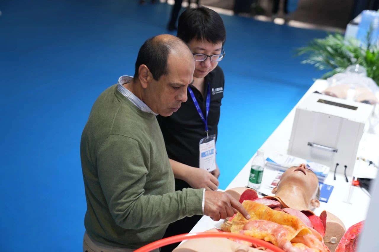 Focused on the Tellyes exhibition area, foreign guests showed great interest in the deep application of AI-based medical education platform and high-fidelity training system. After thoroughly understanding, they all gave consistent praise to the products.