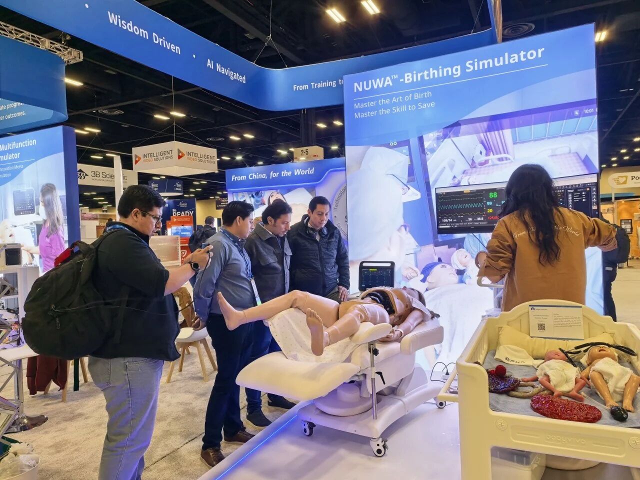 WUKONG-Multifunction Patient Simulator made his charming debut, capturing the attention of the entire hall and attracting a large number of visitors to gather and explore. Additionally, NUWA?-Birthing Simulator drew crowds with her highly precise simulation of the entire birthing process and dynamic feedback powered by physiological-driven algorithms.
